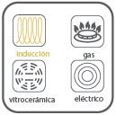Apto para todo tipo de fuegos: cocinas eléctricas, gas, vitrocerámicas e INDUCCIÓN.